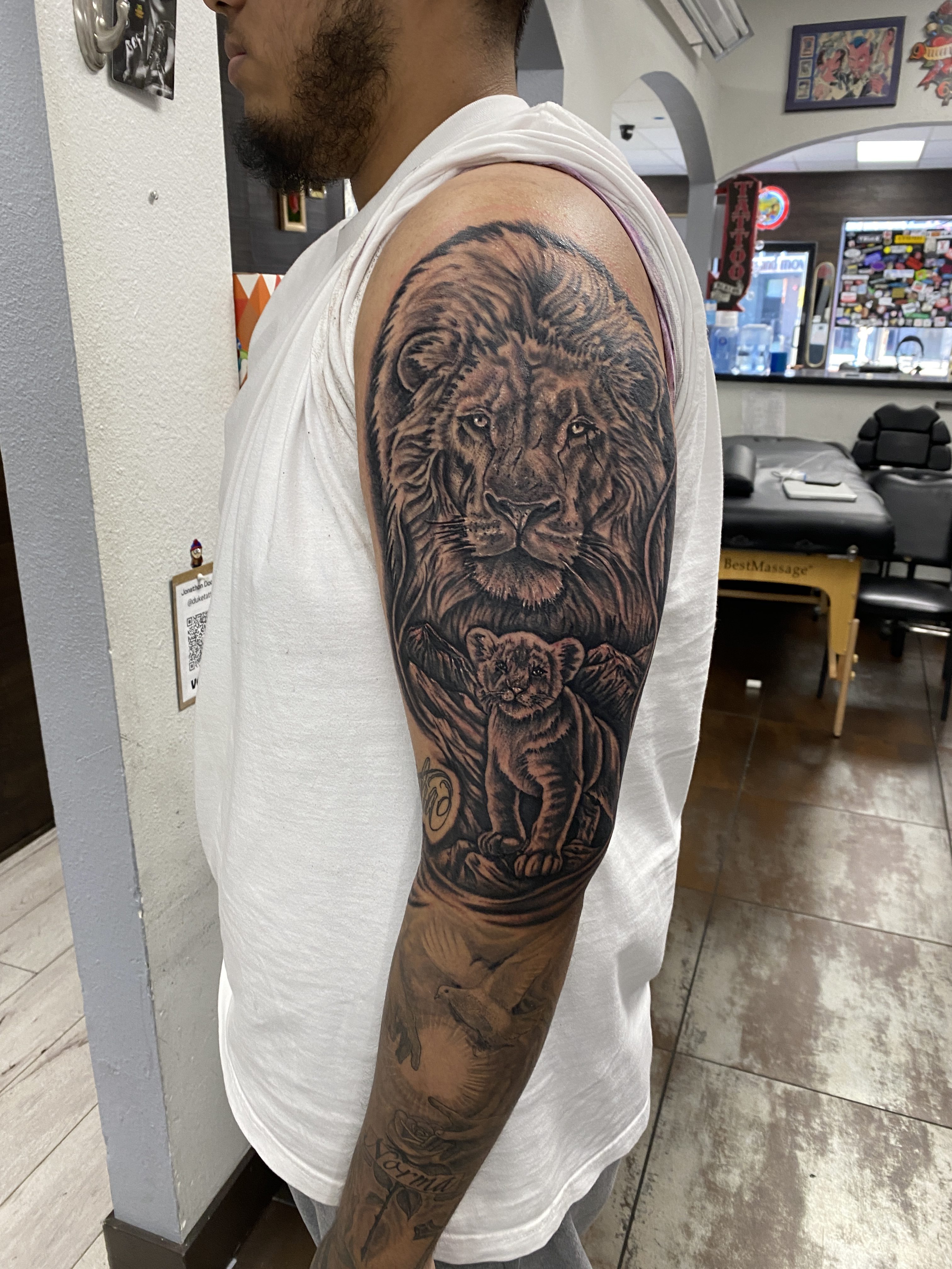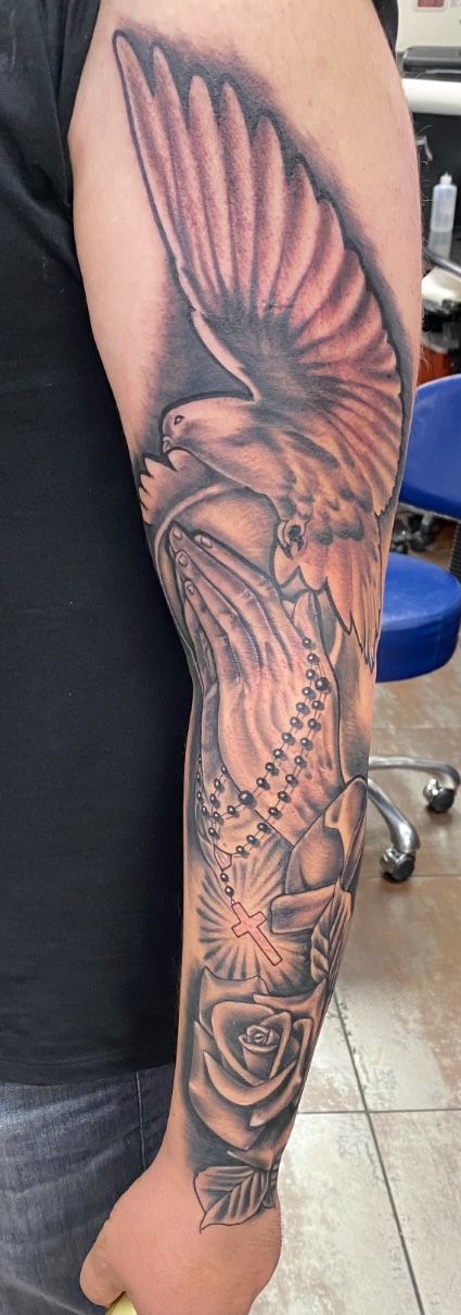 Piercing expertise: From earlobes to more delicate areas and all in between. I’ve got you covered. When I’m not tattooing or piercing, I’m all about family and respect. I make sure everyone feels welcome when they walk through our doors. My Yelp reviews are a testament to that. To book an appointment, email or DM is best.